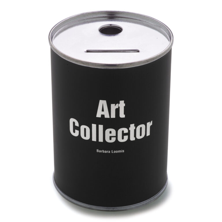 This collecting-box by Barbara Loomis is a collector’s piece in itself: the money will find entrance through a coin slot and a hole for rolled bills, but no exit. It is in the hands of the art collector to grade up the value of this piece of art by him self.