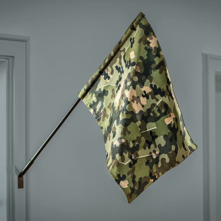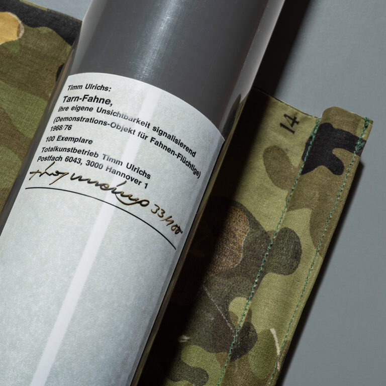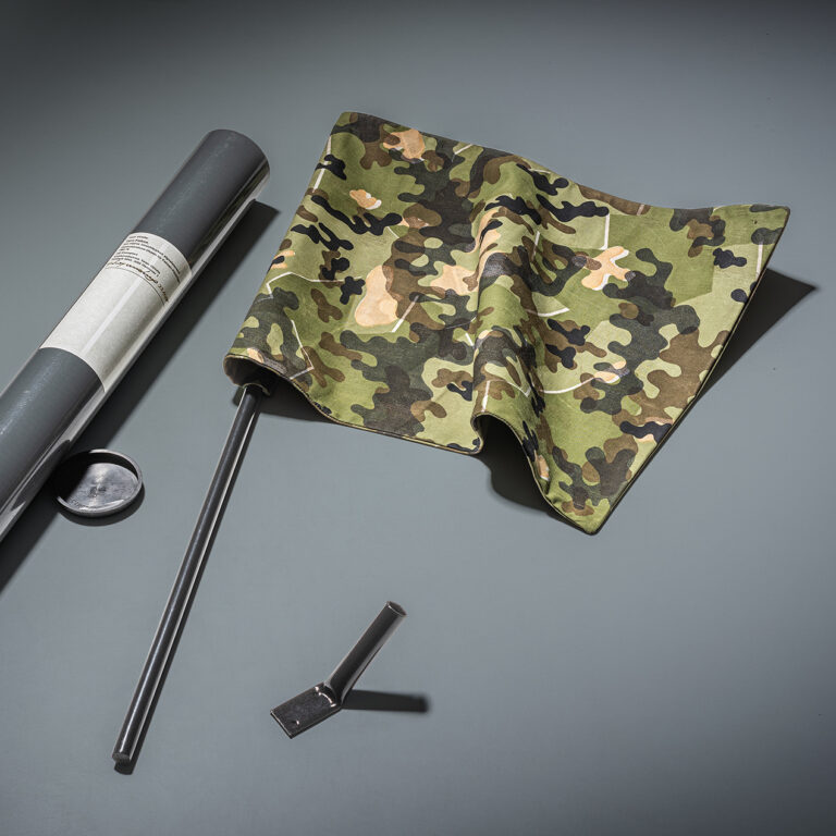 Demonstration object for deserters 40 x 51 cm + flag pole 80 cm, wall bracket in plastic tube Ed. of 100, signed & numbered on label