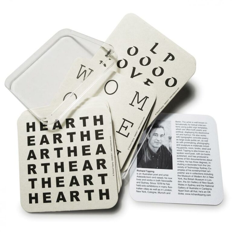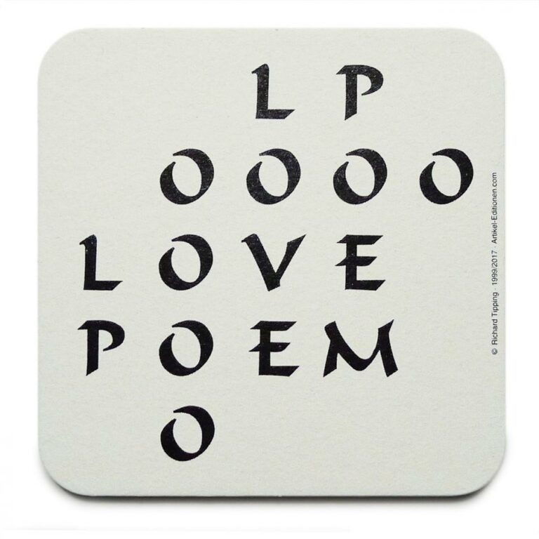 (Long version under INFO) See also Timm Ulrichs’ „Konkrete Poesie“ coasters