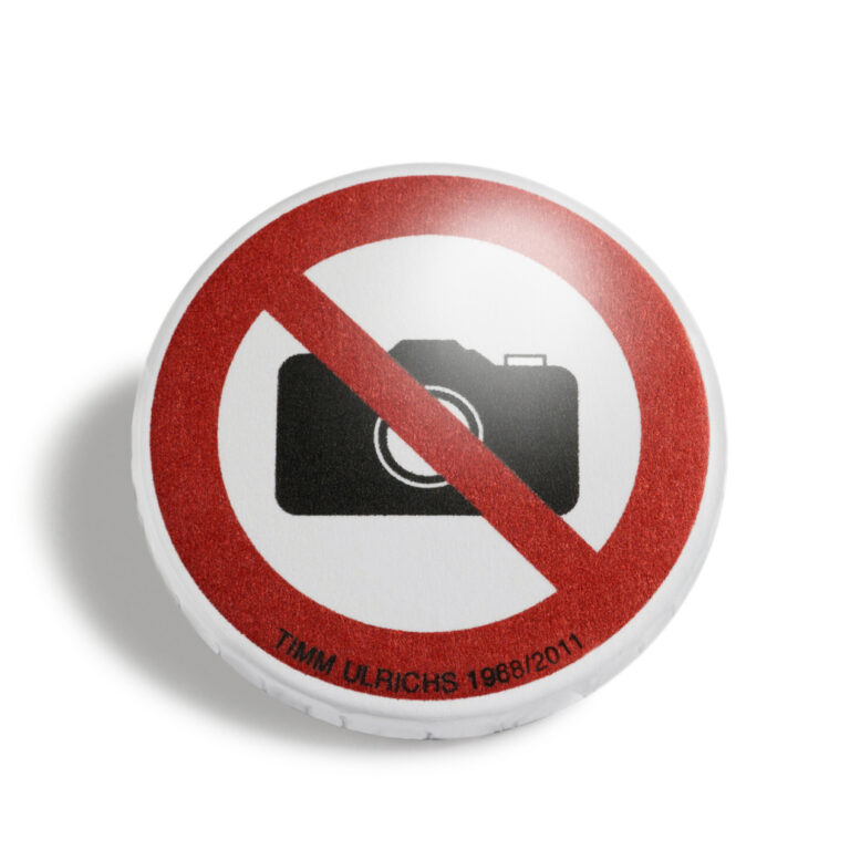 ”Photography Prohibited!“ it has said everywhere since travel with a camera began – and it persists up to our present camera phone-Facebook age. Timm Ulrichs takes ad absurdam the sign banning photography in exhibition spaces and public places by having the signs themselves photographed. Sixty of these photographs, taken on four continents between 1968 to 2011, are in his book ”Photography Prohibited!“. The pictogram is available separately as a sticker.