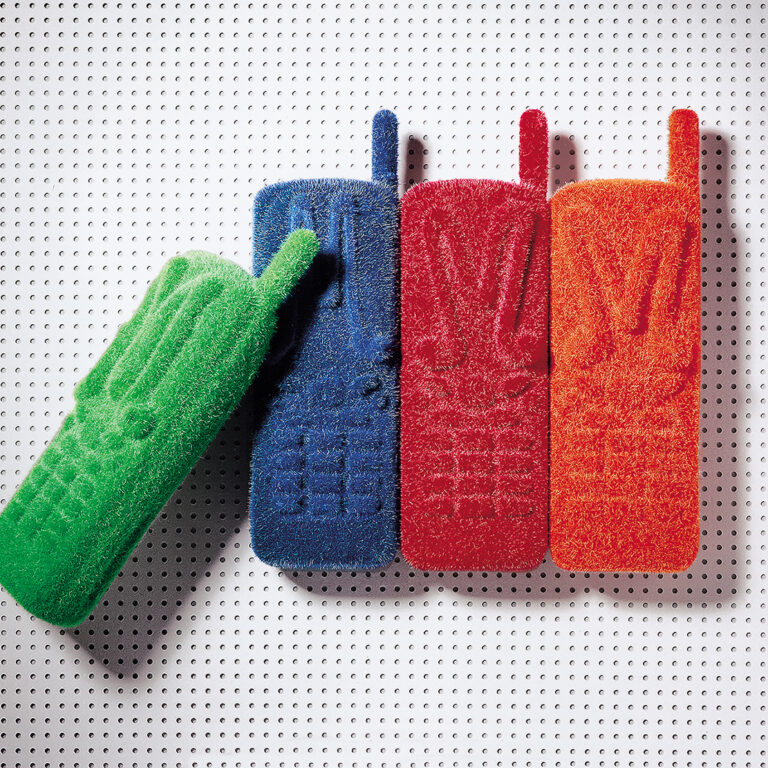 A Multiple from Barbara Szüts’ work group “Modules”, in which she compresses physical waves into contemporary epigrams. The objects can be read as Pop Art readymades from the early days of the popularity of mobile phones and data carriers, alongside such classic consumer electronics products as light bulbs and portable transistor radios.