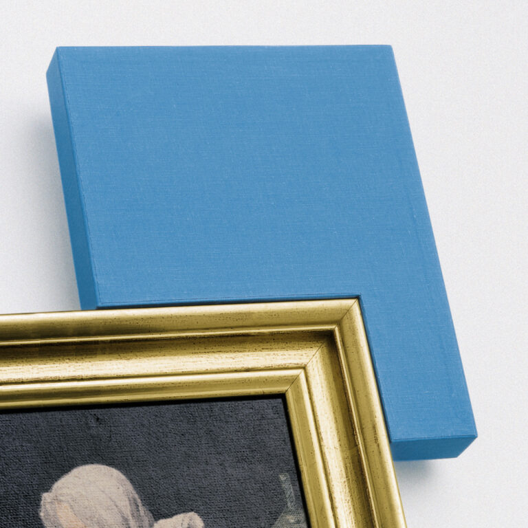 The “Kantenhocker” has been conceived to be put on historical and contemporary art works. While the “Kantenhocker” is squatting on a frame of a picture or a sculpture, it refers to the occupied artwork and draws more attention to it.