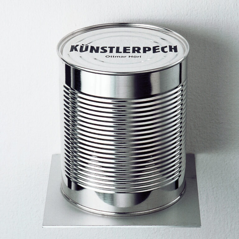 Vergegenständlichung des Begriffes „Künstlerpech“ – mit Referenz an Piero Manzonis „Künstlerscheiße“ (1961), jedoch unter anderen konzeptionellen Vorzeichen, nämlich Hörls „Plastik als Organisationsprinzip“.