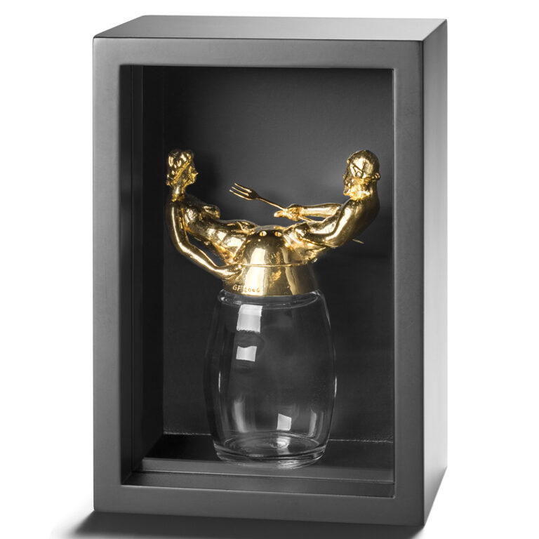 Inspired by the theft from a Viennese museum of the “Saliera”, in November 2004 Moussa Kone and Erwin Uhrmann set up the “artbox” in Vienna (modelled on the “babybox”: a receptacle for the anonymous depositing of unwanted babies), offering a way of returning the stolen art work anonymously. While the worldwide search for Benvenuto Cellini’s salt cellar continued, a “Saliera” was found in the artbox at the beginning of 2005: following pictures of the original, Gerold Fink had made it from modelling clay, gold lacquer and a salt shaker, and placed it in a preserving jar. Fink’s salt cellar was shown in the “Hotspots” exhibition (Essl collection, 2005/2006) and in the “Collection of Stolen Art” exhibition (“Exponatec”, Cologne 2006). The historical Saliera was found again in early 2006 and brought back to the Kunsthistorisches Museum.