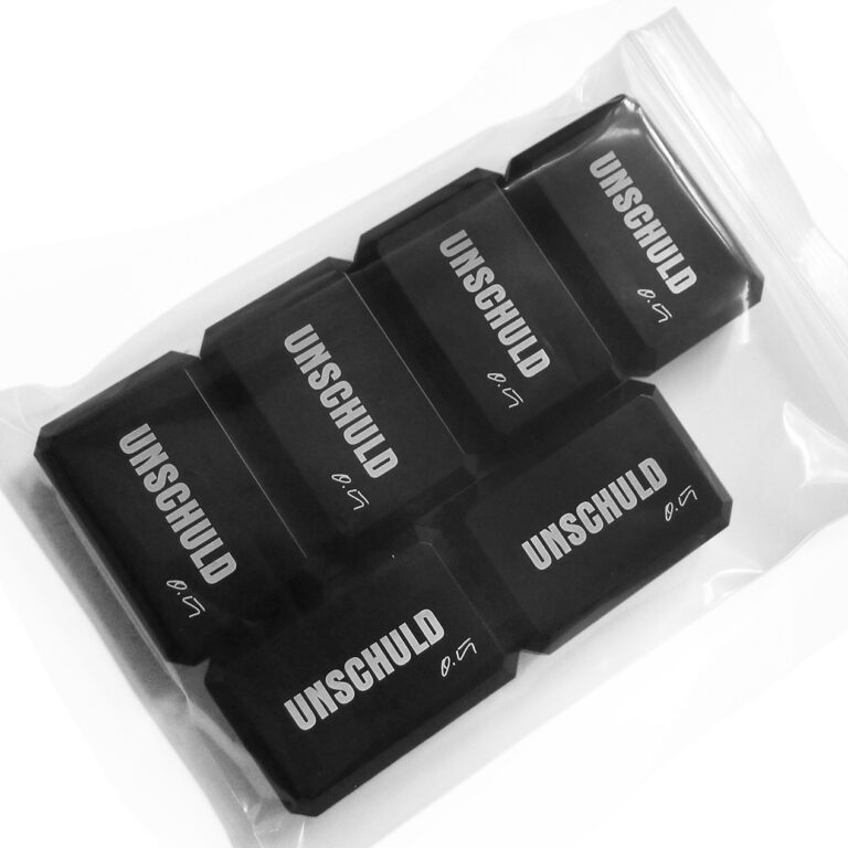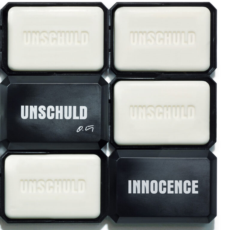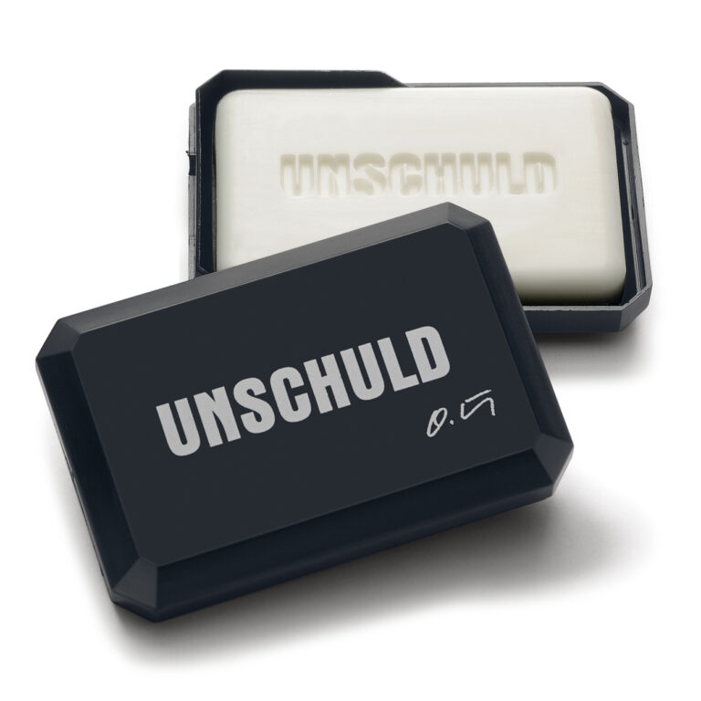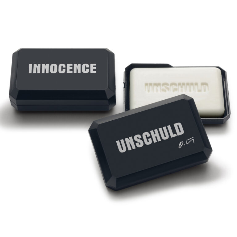 This bilingual miniature edition refers to the 1997 released edition of “UNSCHULD“, (conceptual) limited to 82 Mio. The wording objectifying Pilate’s words: ‘I wash my hands in innocence’.