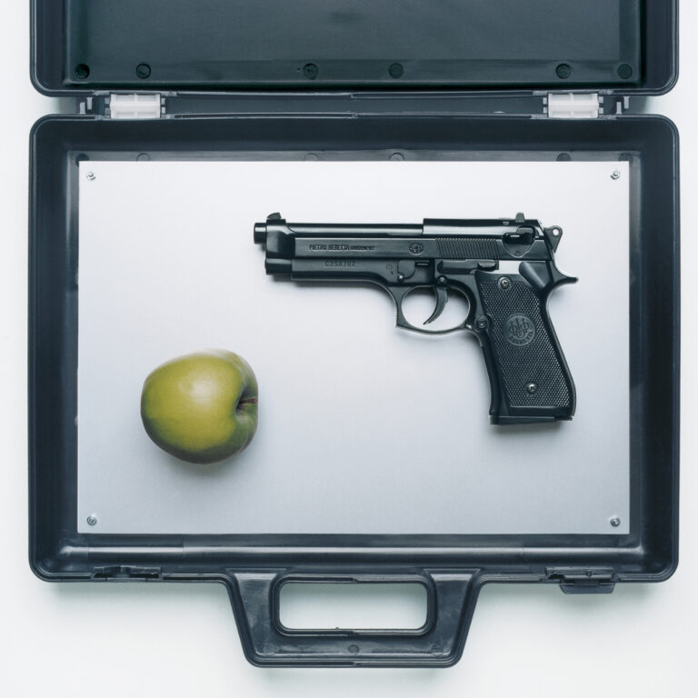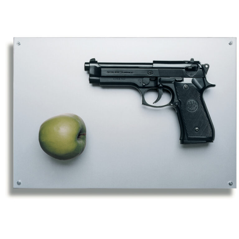Stilleben nach der Legende des Schweizer Freiheitskämpfers Wilhelm Tell, der vom habsburgischen Landvogt Gessler gezwungen wird, einen Apfel vom Kopf seines Sohnes zu schießen.
