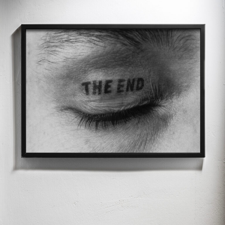 Im Rahmen der Werkgruppe „Filmvorstellungen, vorgestellt“ (1961–1971) ließ sich Timm Ulrichs 1981 im Frankfurter Samy’s Tatoo Studio den Schriftzug THE END auf sein rechtes Augenlid tätowieren und fotografieren. „THE END“ ist auch der Titel einer Videoarbeit, die 60 Schlussbilder aus Spielfilmen in einer ca. siebenminütigen Anthologie versammelt.