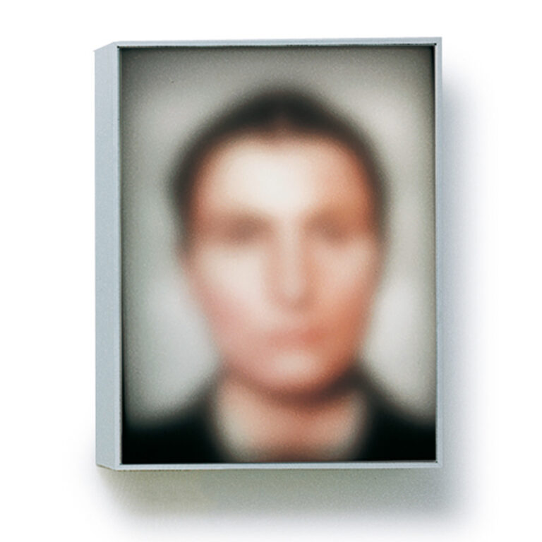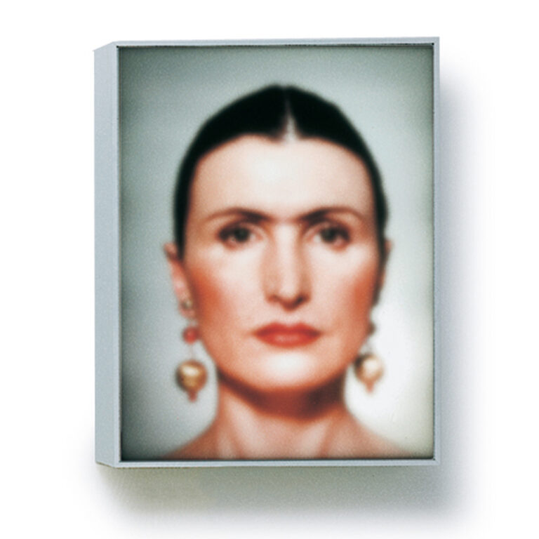 Die Bilder erscheinen (durch verschiedene Abstände zur Leuchtkasten-Mattscheibe) in unterschiedlicher Schärfe – von unscharf (Motiv # 1) bis scharf (Motiv # 5).