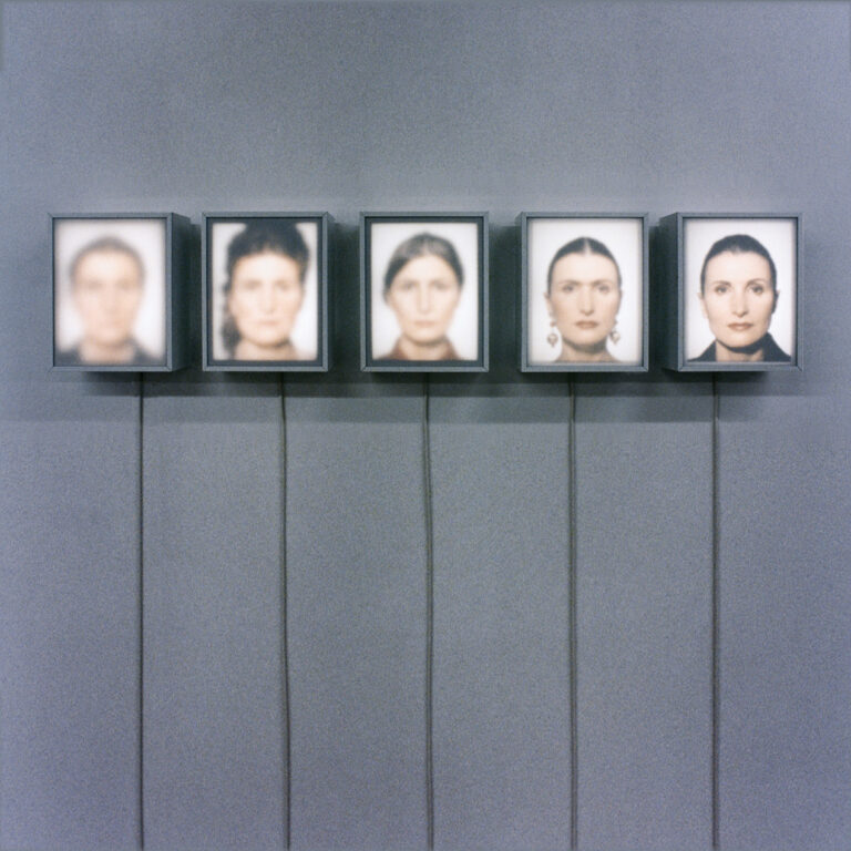 Reihe von fünf Porträts nach Selbstporträts von Künstlerinnen aus vier Jahrhunderten.